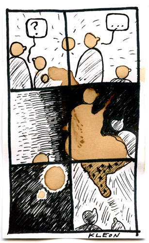 Austin Kleon nói rằng: “Tôi thực sự yêu thích màu sắc này, các bức vẽ từ túi trà mang đến một cảm giác chân thật, tự nhiên trong từng đường nét”. Và đúng như thế, các bản phác thảo từ túi trà của Kleon thường mô tả những hình ảnh nhẹ nhàng, bay bổng và cũng không kém phần trừu tượng tựa như một câu chuyện hoạt hình.