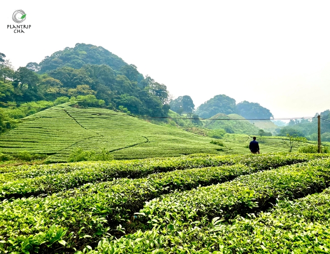 Khung cảnh đồi chè Pà Cò an nhiên và thi vị.
